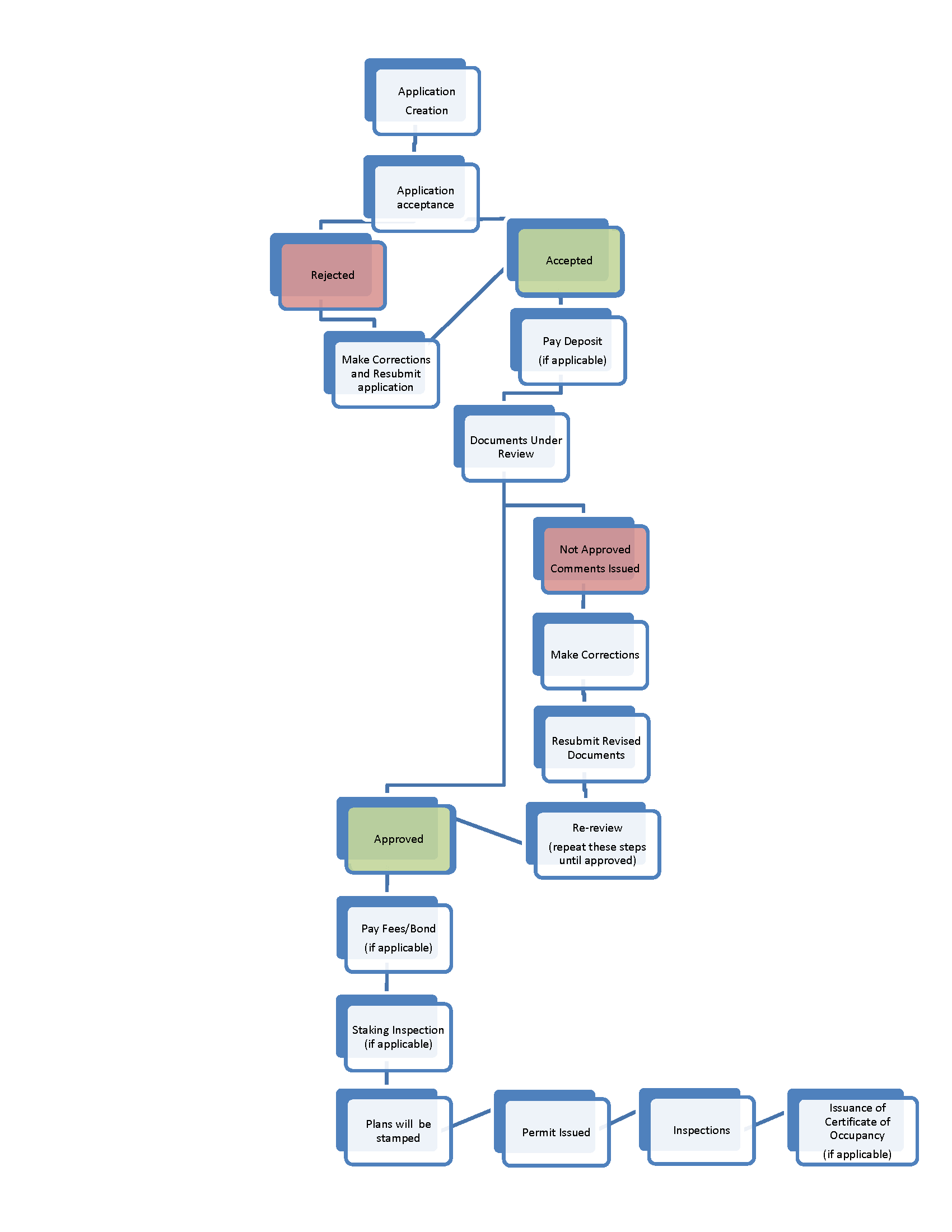 • Building Permit Checklists: Before submitting your building permit application, please review the applicable checklist(s) (click here). All required documents noted on the checklist(s) must be included at the time of submittal. Incomplete applications will be rejected and returned for resubmission.